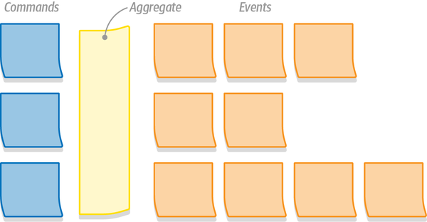 - Mỗi aggregate sẽ có command vào và event sinh ra